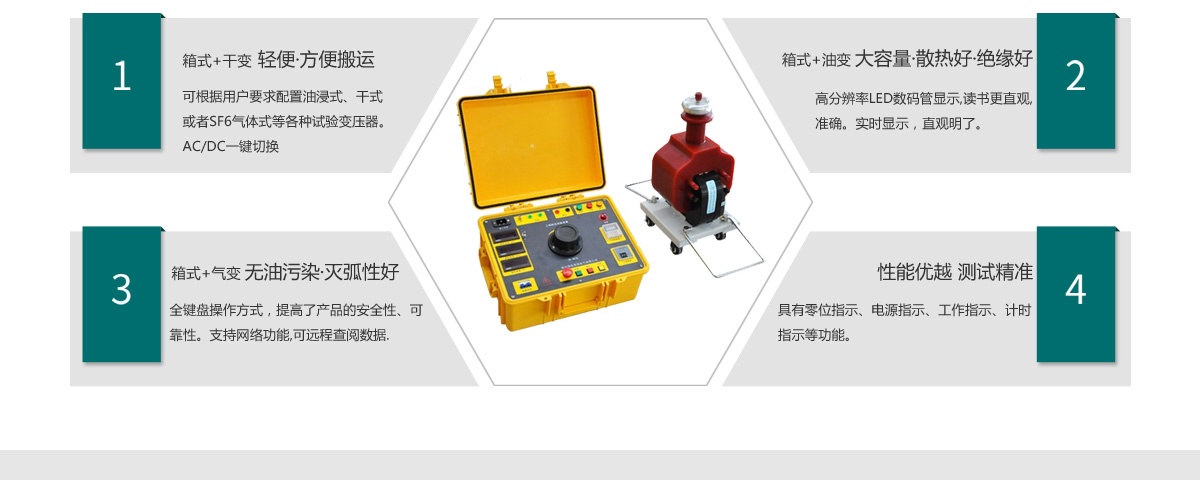 可根據(jù)用戶要求配置油浸式、干式或者SF6氣體式等各種試驗變壓器。