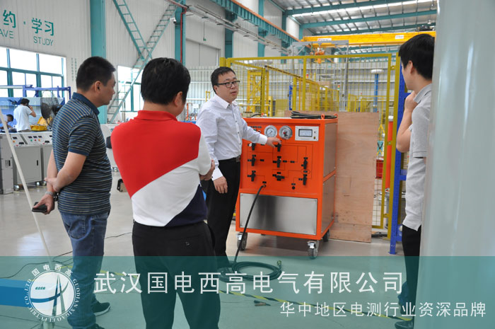 秋風(fēng)瑟瑟,國電西高迎來了江蘇現(xiàn)代重工的到訪。此次客戶到訪是為了考察我司公司實力,并查看SF6相關(guān)試驗設(shè)備。