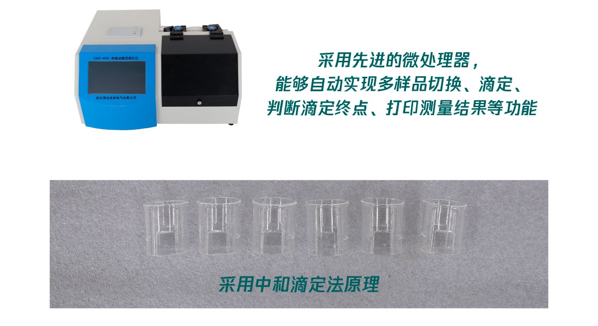 · 儀器采用中和滴定法原理,儀器可自動完成攪拌、加液、滴定及終點判斷。整個過程一鍵完成;