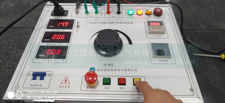 在進(jìn)行絕緣安全工器具的耐壓試驗(yàn)時(shí),我們用耐壓試驗(yàn)裝置對(duì)其絕緣手套和絕緣靴分別做了試驗(yàn)電壓8kV和15kV耐壓一分鐘的試驗(yàn),結(jié)果均達(dá)到國家標(biāo)準(zhǔn),試驗(yàn)通過。